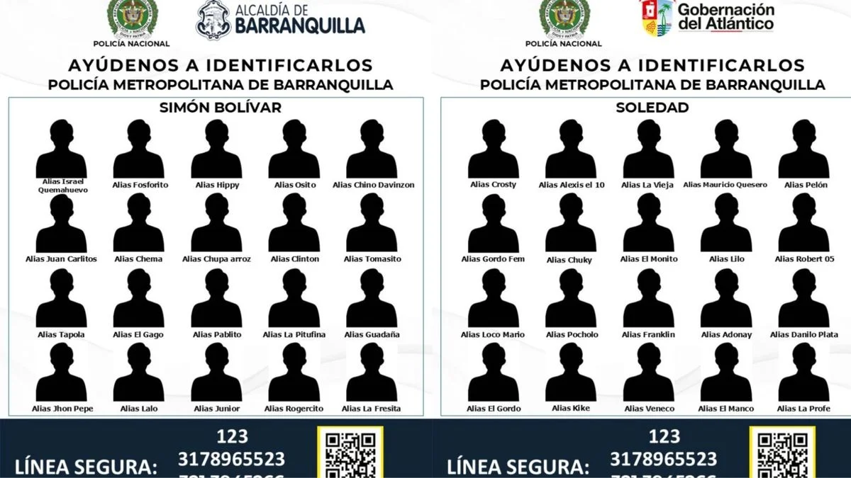 El ‘cartel de los más buscados’ en Barranquilla ha generado burlas y fuertes críticas por parte de la ciudadanía, luego de que las autoridades difundieran un volante sin los rostros de los presuntos delincuentes, reemplazándolos por siluetas negras y solicitando apoyo ciudadano para su identificación.